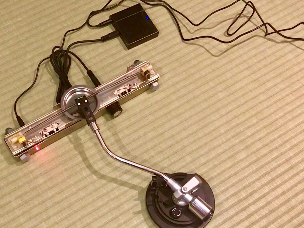 ●In his work Drinking from the Spring of Liquid Love, Japanese musician/artist dj sniff gathers songs whose titles and lyrics contain the term “liquid love” from a huge volume of online information. The length of the “collected data” is about half a day. The artist remixes these songs into a “new work,” and then plays it via the reconnection of a set of repurposed sound objects like turntable, cassette player, spring, and amplifier. After layers of deconstruction and reconstruction, the source material becomes unintelligible to the visitors as “sound signals” and a new song engraved onto vinyl.