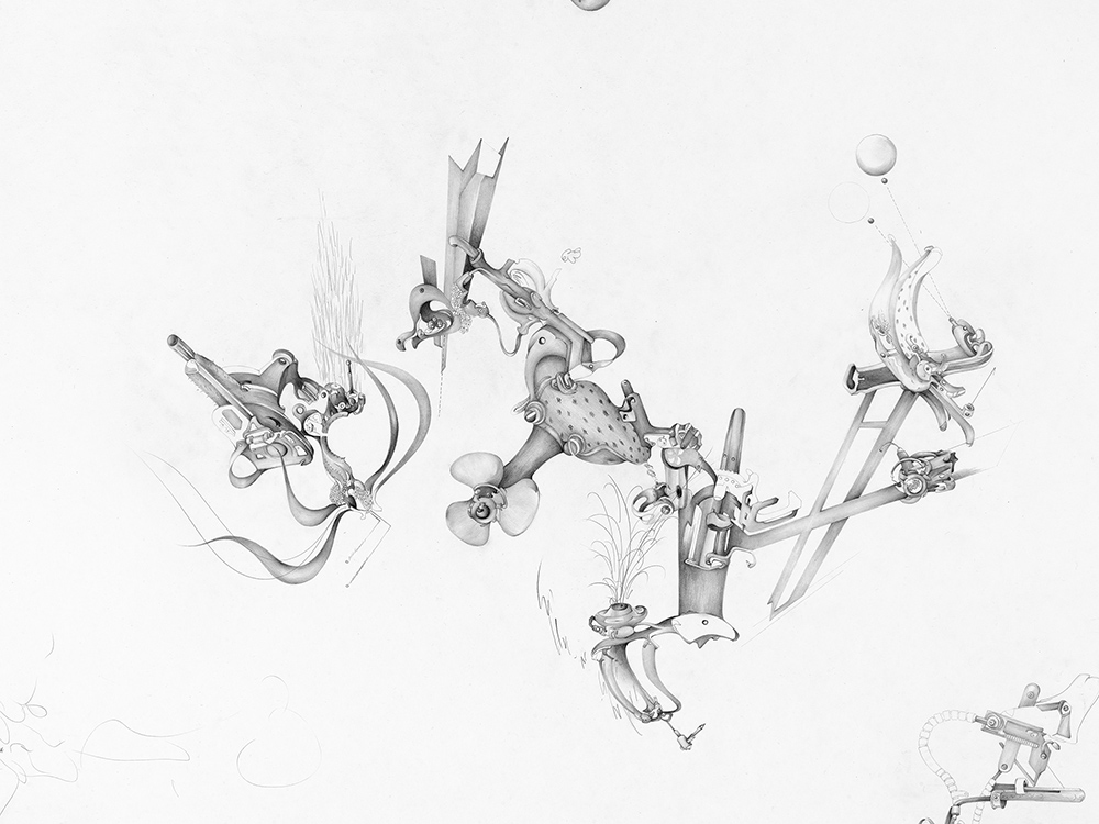 The work of Yu-Chen Wang asks fundamental questions about human identity at a key point in history, where ecosystems and techno-systems have become inextricably intertwined. At the same time, her Taiwanese origins, combined with a London-based practice, have created a vision that is personal and autobiographical. Her central practice is drawing, allowing her to explore and meditate on mechanical and biological forms, and the ways in which their bodily borderlines blur and mutate. From these extemporizations, she then finds collaborative routes that take her work into the realms of fictional text, provoking the subsequent production of sculptural installation, performance, music, and film in various combinations.