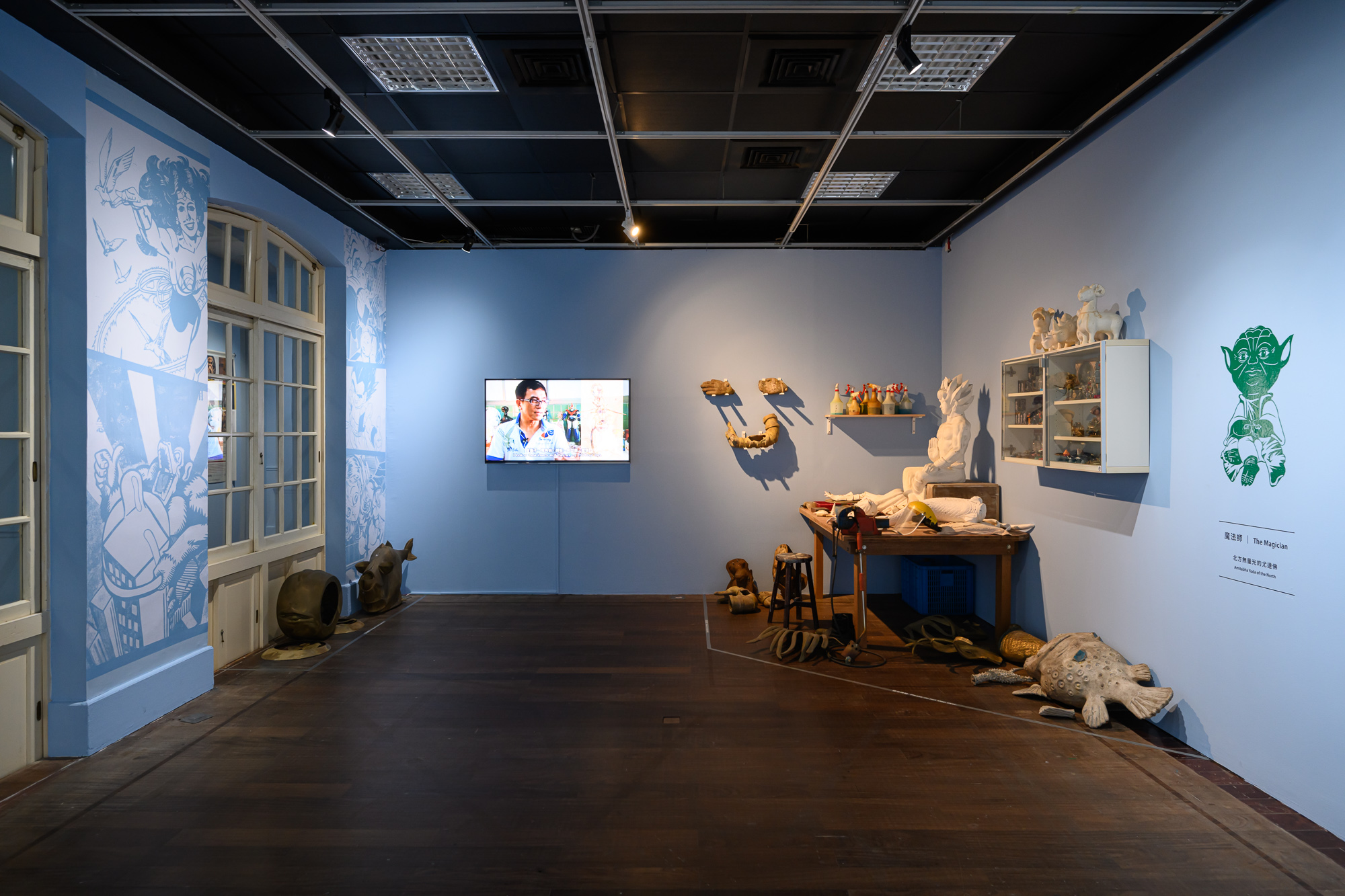 Yang Mao-Lin’s earlier works explore figures and themes that included failed immortals; heroes in turbulent times; a baby with “Bad Taste”; and the Maha, as well as “Culture Intercourse”; “Canonization of the Gods”; “The Immortals”; and “The Quest for Mandala,” which then led to his grand exhibitions, MADE IN TAIWAN, in 2016 and Wanderers of the Abyssal Darkness in 2018. For years, Yang, whilst traversing a dark abyss, has used art to create cultural hybrid narratives that bring together fairy tales, myths, and beliefs, where he calls out for “Rescues in Time” and also creates gods that come to the rescue. The unique artworks created have also allowed the artist to embark on a long journey with the hero that lies deep within him. Yang’s “Rescues in Time” began with characters of the Warrior and the Martyr from historical myths based on Taiwan’s martial law era, with symbolic salvation obtained through cultural creativity from moments of failure. Then, through appropriating stories about saving the world, heroic acts of justice, and universal restoration appropriated from manga, anime, fairytales, and popular subcultures, the characters of the Innocent, the Orphan, and the Wanderer from children and adolescents’ memories are created to repeatedly overcome obstacles and to find pure redemption in a world that is currently falling apart.