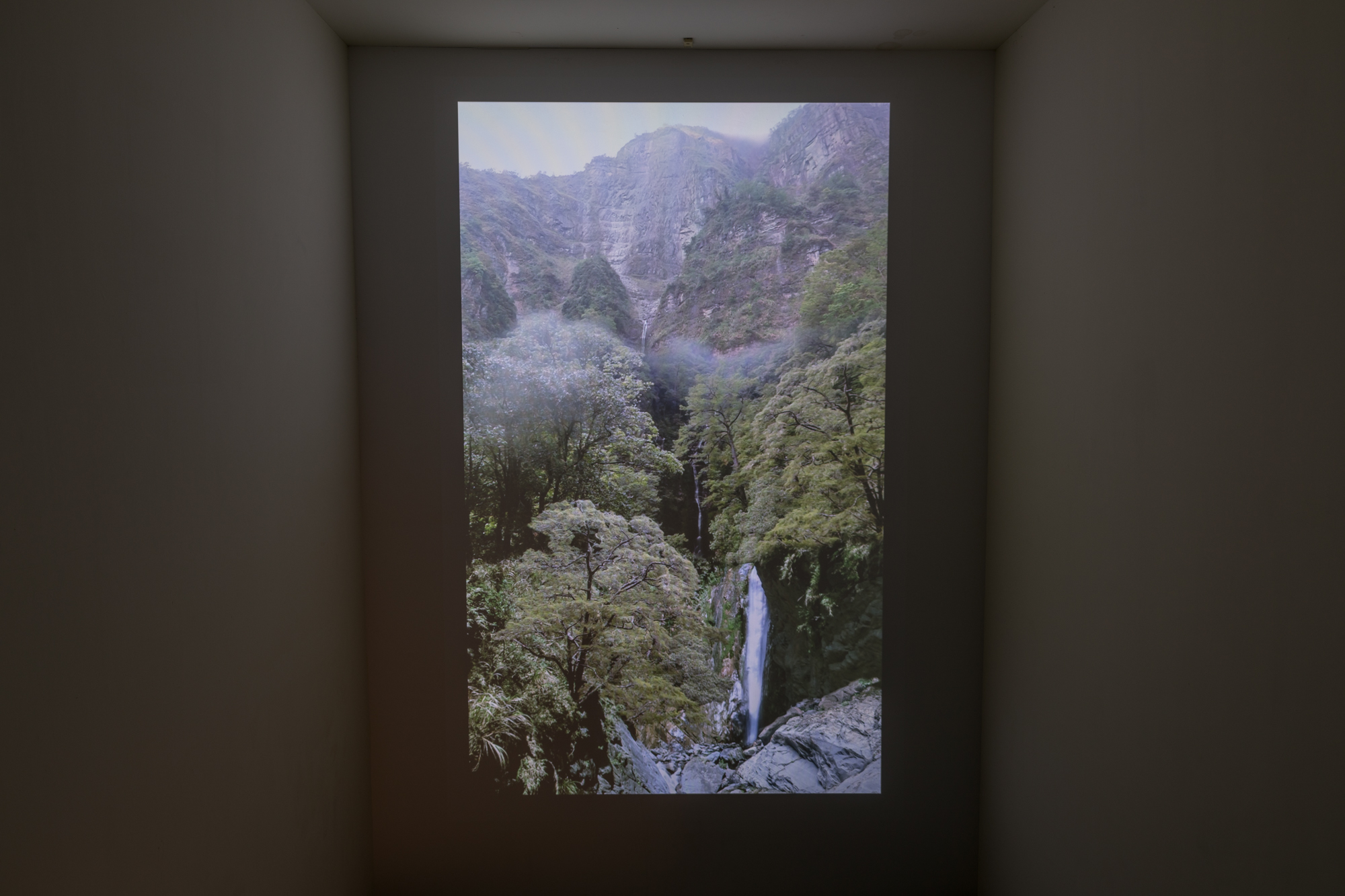 The exhibition explores and contemplates on Taiwanese landscape through five sections. For the first section, the curatorial team journeyed to different parts of the Xue Mountain Range, Central Mountain Range, and Ali Mountain Range to filmed three waterfalls and created a scroll-like video work afterwards. The video symbolizes the landscape painting that shows how Taiwanese people have viewed nature during the rule of Qing dynasty. The second section introduces botanic gardens established during the Japanese-ruled period and reproduced picture postcards, through which the section would explore how nature was perceived in a manner of "decontextualization" after modernity was introduced into Taiwan as well as the landscape painting of this period. In the third section, audience could see the landscape paintings of different types by various contemporary Taiwanese painters. The section reveals both the disparities between contemporary landscape paintings and those from the Japanese-ruled Taiwan, and the shift in the relationship between man and nature. On view in the fourth section is a remake of a segment from Hou Hsiao-Hsien's road film, demonstrating the landscape from another perspective and through a different medium. The fifth section displays an installation that embodies the landscape of Taiwanese forest. A video of the Taiwanese endemic plant, Taiwan Photinia, is placed in this landscape installation. This particular Taiwan Photinia has been transplanted in a garden in Normandy, France several decades ago. Through its representation, the section reexamines the problematic of "ecolonialism" in the context of globalization and responds to the cultural thinking of recontextualization in this eco action of "returning the land to trees."