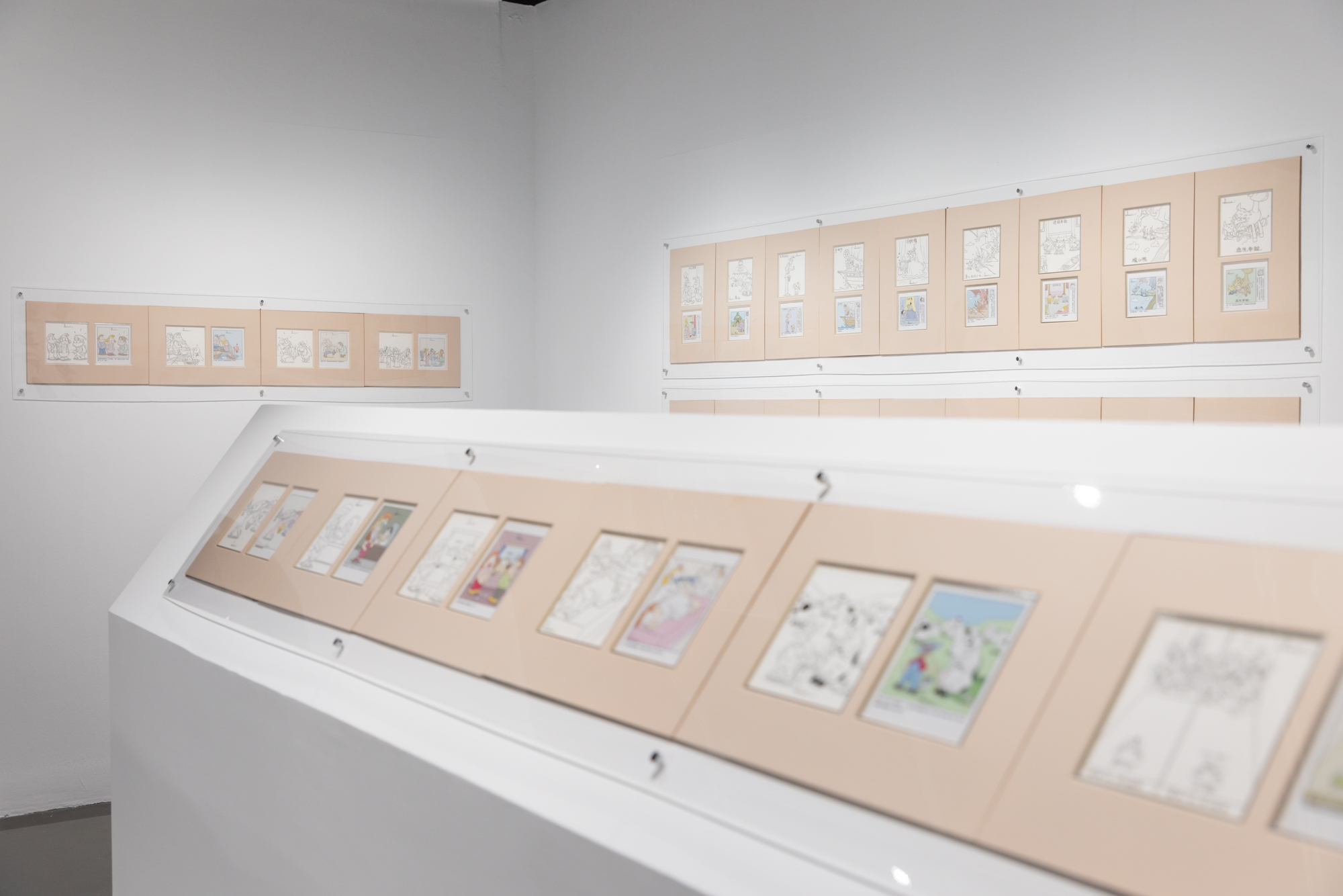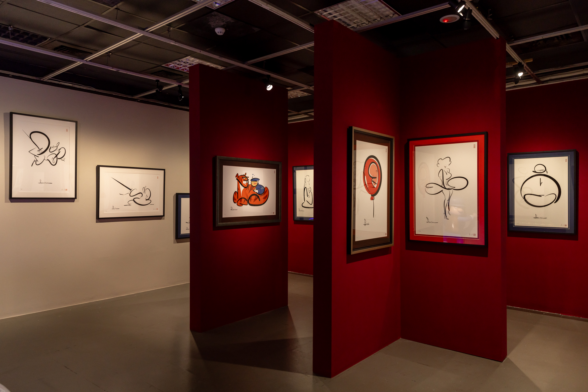 鑑此,本展以「指劍之舞」為名規劃三個區塊子題,分別就漫畫藝術家蕭言中早期的成名漫畫作品系列《童話短路》、《整形》 及《笨賊一籮筐》等經典名作之原稿與出版來對照呈現,並就蕭言中從過去的漫畫線條融入書法氣韻精神的線條質地轉折做一探究,進而帶出以「指劍」舞指成畫、化繁為簡的近年新作,從中窺探出漫畫藝術家蕭言中的創作心法與歷程,並展現其欲將漫畫表現形式昇華為藝術表現的精神性之宏圖。