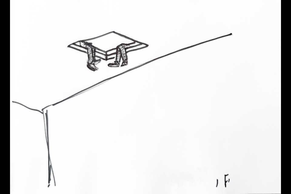 畢業之後,讓豬仔飛也漸漸由一群年輕藝術工作者的協作組成,轉向為在創作、策展、藝術教育與設計上的各自路線。唯一不變的是那些將他們凝聚至今的場景:社運現場、開幕前夜的展覽佈置、各自的居所以及漫長的視訊會議。成員們無意隱藏這樣「私」的情誼,並在過往的發表中持續地揭露這些難以化約為作品的關係,記錄並回應著屬於他們與藝術的距離。